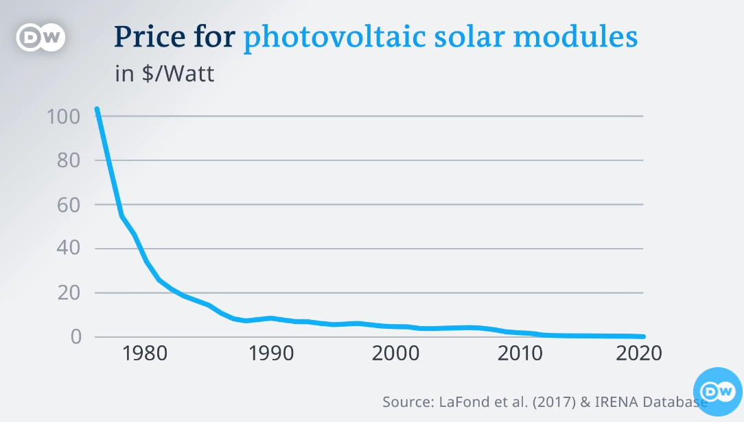 But much like the history of PV solar panels development shown in the below graph, humans are always capable of bringing down the cost of their inventions, gradually. I think the TLSC technology will be a necessary component of our near-future green society once it reaches a higher efficiency as well as a longer lifespan.