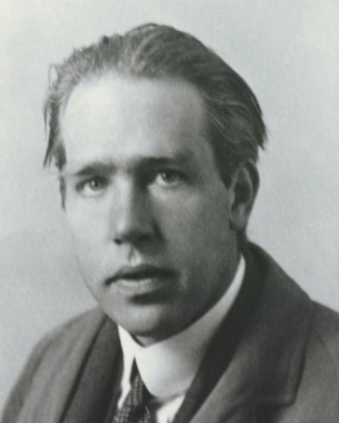 arguing that electrons could only move around the nucleus in certain fixed orbits, emitting quanta of light (inspired by Albert Einstein and Max Planck) as they jumped from one level to another